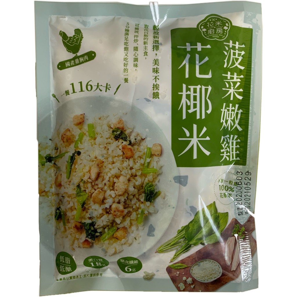 【大成】花米廚房 菠菜嫩雞花椰米 5包組 大成食品(花椰菜米 減醣 生酮 低gi) 品號:7976383; 大成食品︱花椰菜米低卡即食調理包11包 (花椰米_義式鮭魚/日式親子/菠菜嫩雞/海陸雙饗/活力纖蔬 任選10包 250g/包)+送舒迷雞胸肉1包 (125g/包)︱舒迷 舒肥輕食嫩雞胸肉125g 經典原味. 大成 花米廚房 海陸雙饗花椰米250g 5分鐘料理上桌,備餐沒煩惱 不需提前解凍,即可直接微波、拌炒料理 將白花椰菜切碎成米粒狀,熱量僅白飯的1/9 美食團【大成 健康低卡花椰菜米料理系列】 【團購價】$ 菠菜$140/ 海陸$150 復復復咀嚼起來甚至比飯更有口感~低卡低負擔~來復復復 如果你是餐餐離不開米飯~為吃太多澱粉而苦惱 讓你吃一口根本就像吃米飯一樣的花椰菜米 還很貼心幫你把一餐所需都貼補齊 兩種口味,滿足喜歡獨特滋味的你. 信用卡 line pay apple pay